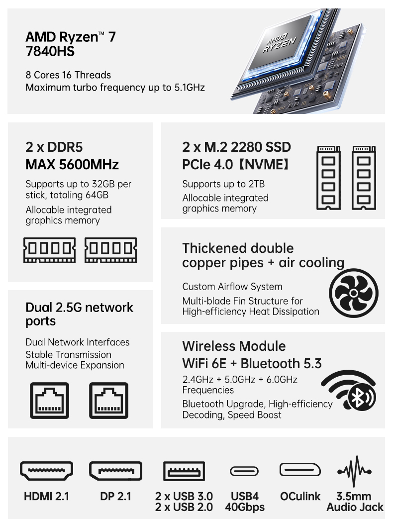 | Memory | DDR5 Dual channel(SODIMM Slots x2,Up to 5600MHz,Max 64GB) |