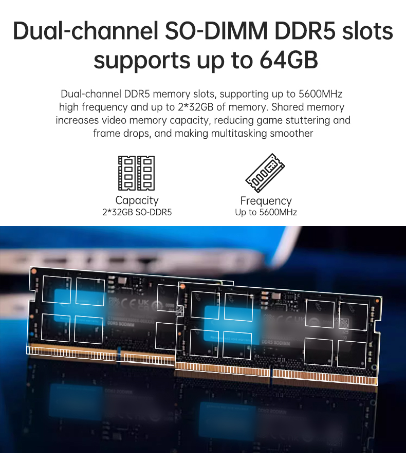 | Memory | DDR5 Dual channel(SODIMM Slots x2,Up to 5600MHz,Max 64GB) |