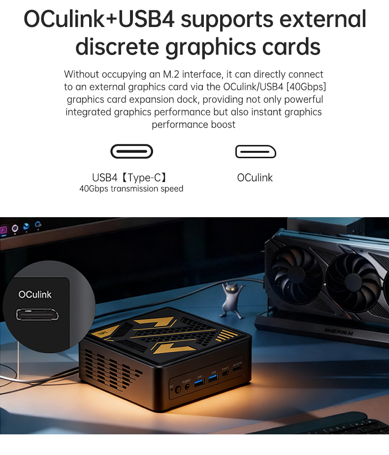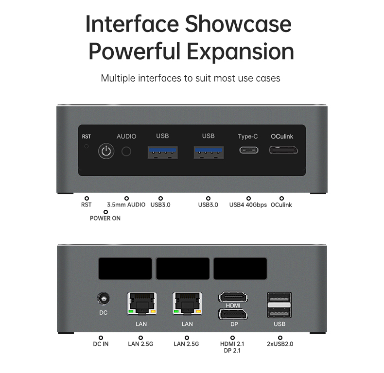 1xType-C(USB4) 1xHDMI 2.1 1xDP 2.1 1xAudio Jack 1xDC 19V 2xUSB3.2 Gen1 2xUSB2.0 1xOCulink |