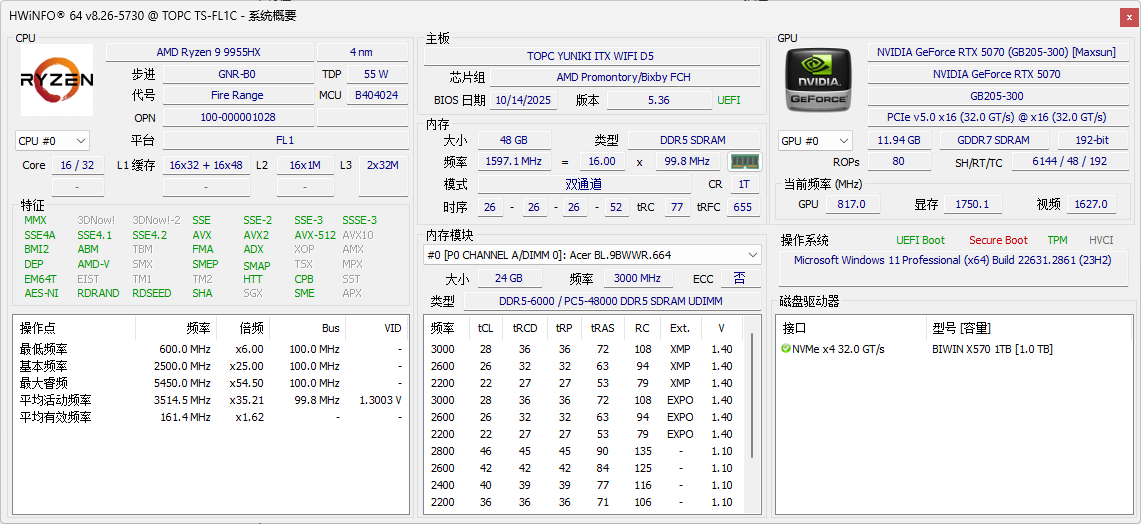 TOPC FL1 ITX R9-9955HX motherboard
